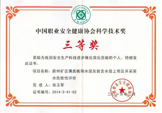 (15)张玉军,李凤明.基于煤层底板有效隔水层厚度突水危险性预测研究[M],2013 International Symposium on Coal mining and safety—Safety and high efficiency mining in coal, ST.PLUM-BLOSSOM Press, 2013.10:276-282。