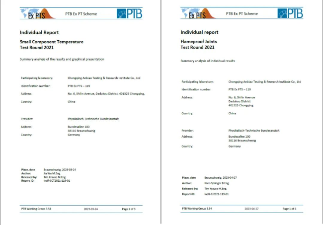 近日,重庆研究院检测分院顺利通过PTB国际能力验证,离取得IECEx TL实验室资质更进了一步。